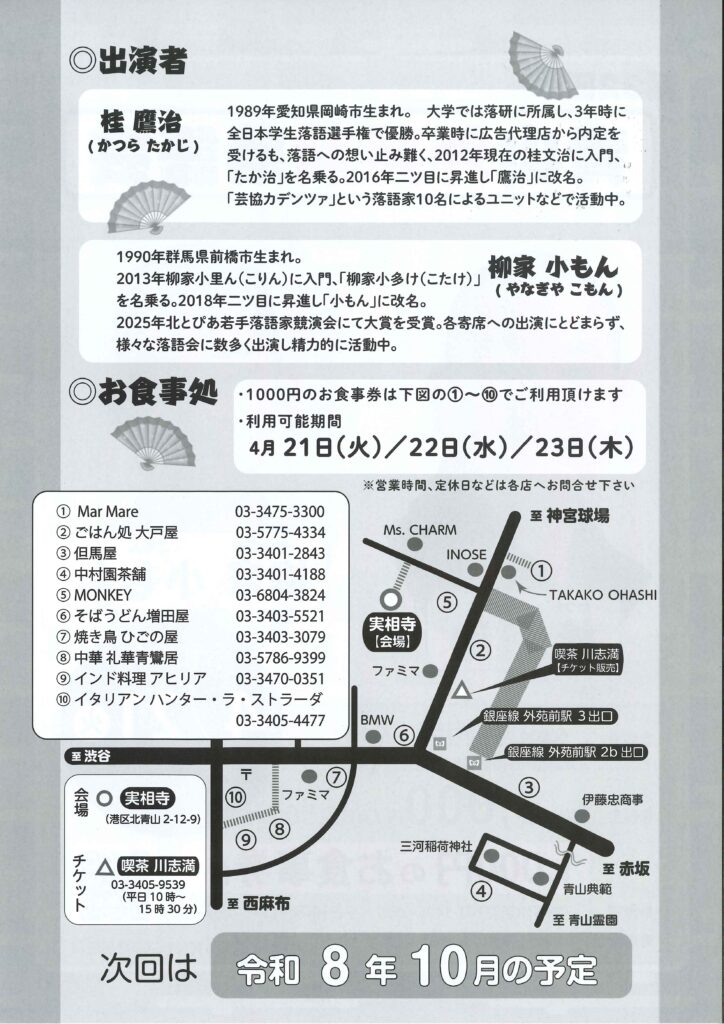 第32回 青山外苑前落語会のお知らせ